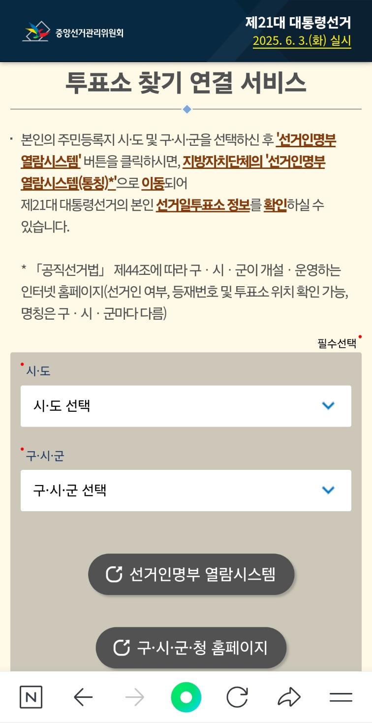 투표는 지정된 투표소에서만 가능합니다. 아래 방법을 통해 자신의 투표소를 쉽게 확인할 수 있습니다.