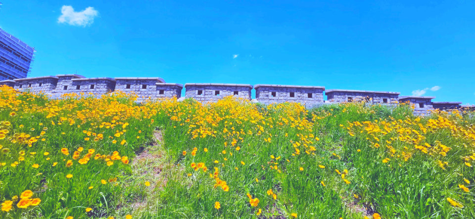 문화재와 자연이 어우러진 도심 속 금계국 명소. 역사적 배경 속에서 황금빛 꽃길을 거닐 수 있습니다.
